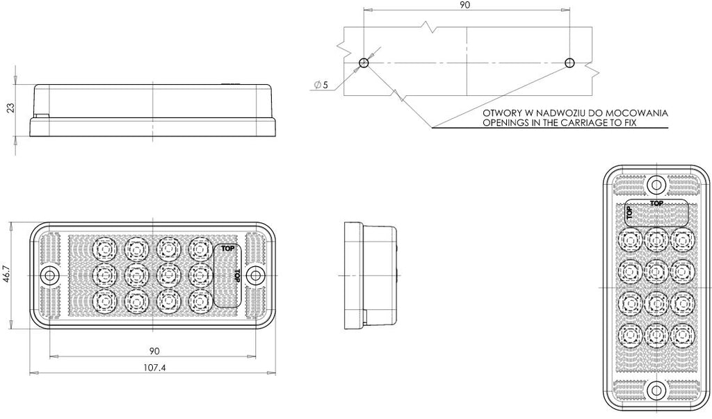 · Length 107.4mm x Depth 23mm x Height 46.7mm
