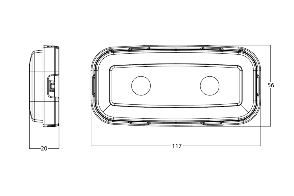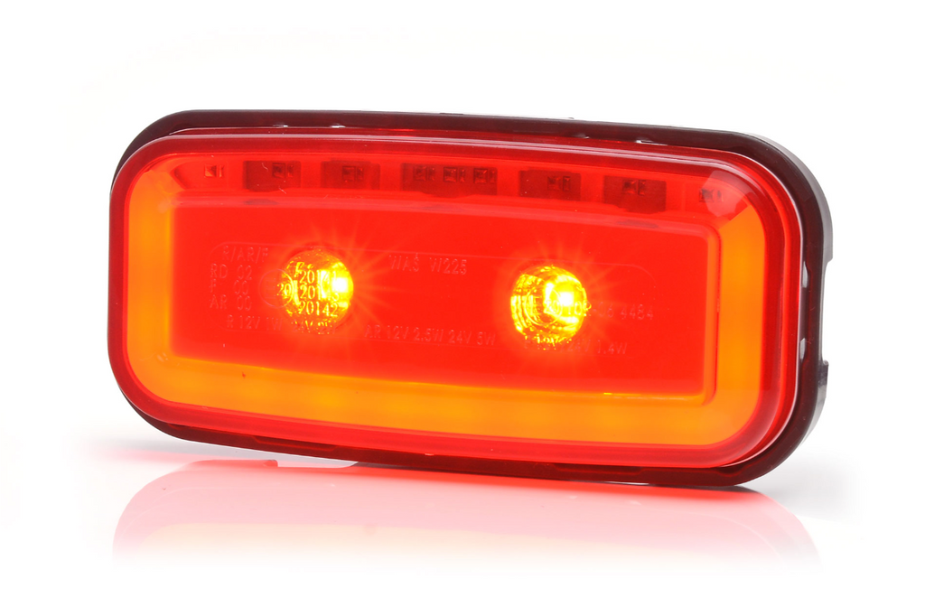 The WAŚ W225 LED Rear Tail & Fog Lamp - EC1481KRRF is a rear position tail & fog lamp. This multifunctional compact rear light can be fitted to either side of the vehicle. The lamp sits on a mounting plate fitted to the vehicle.